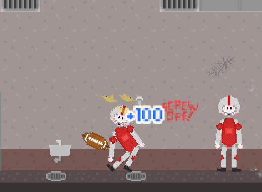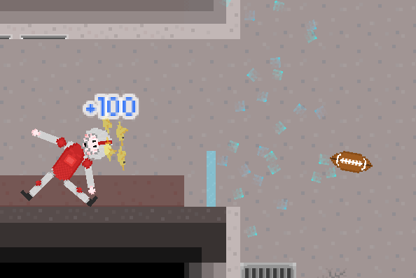 You are a football that was left at a rival school. There are countless football players, tennis ball launchers, and obstacles preventing your escape. You must launch yourself throughout the school, knock out the rival players, and escape to the outside to make it back to your school and take your revenge by scoring a goal.